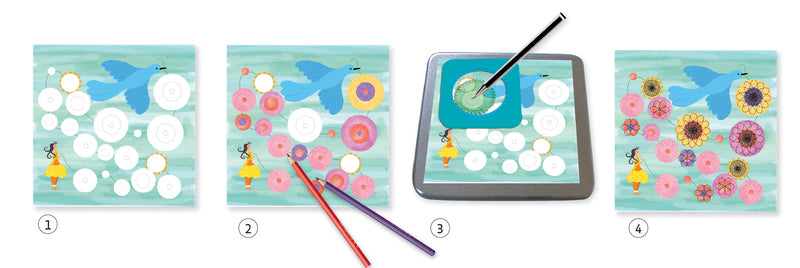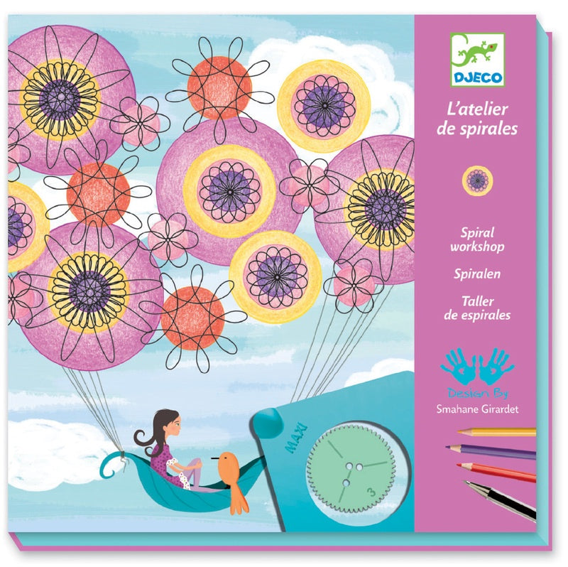 . Following the instructions, children choose an illustrated card and create fun spiral art works on the card. These spirals can then be coloured in to add a personal touch. The kit can be reused on any paper with the metal backing board and durable plastic spirals with magnetic frames.