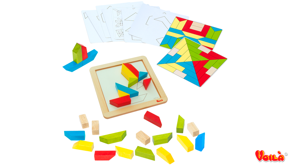 Colourful geometric wooden block pattern set for 3-99 Years!